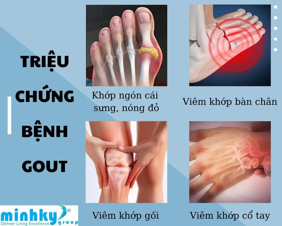 Triệu chứng bệnh Gout thường xảy ra đột ngột và vào ban đêm. Các triệu chứng chính của bệnh bao gồm: